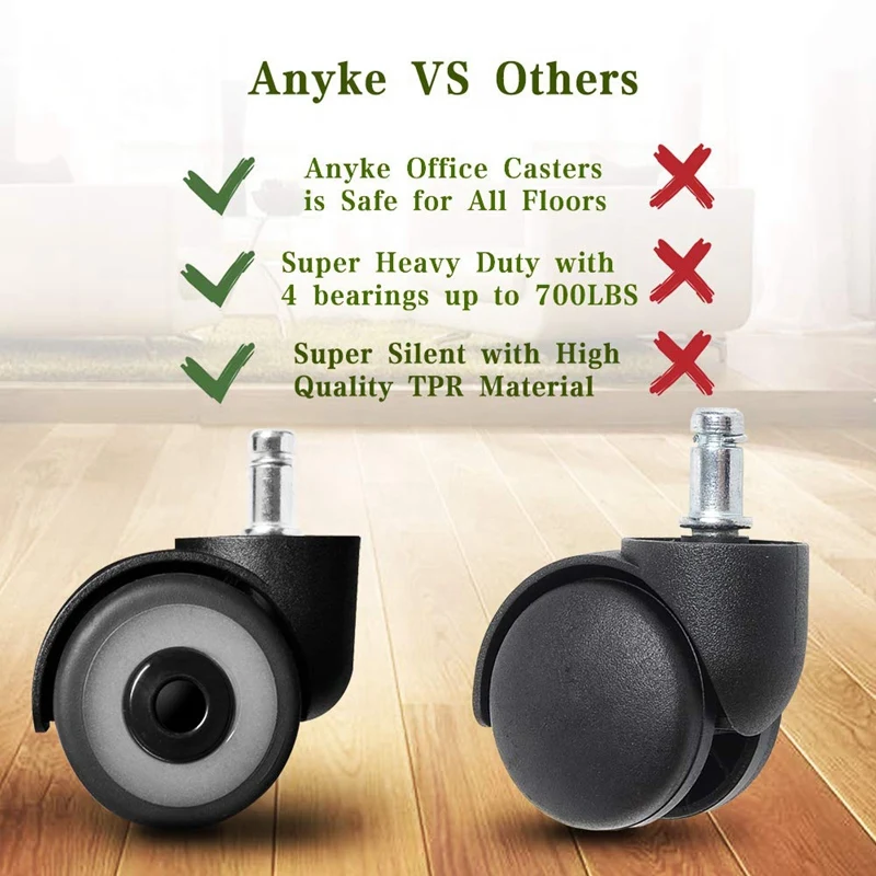 ORIGINAL 5Pc Universal Mute Caster 2 Inch Replacement Office Chair Swivel Rubber Rollers Wheels For Furnitur