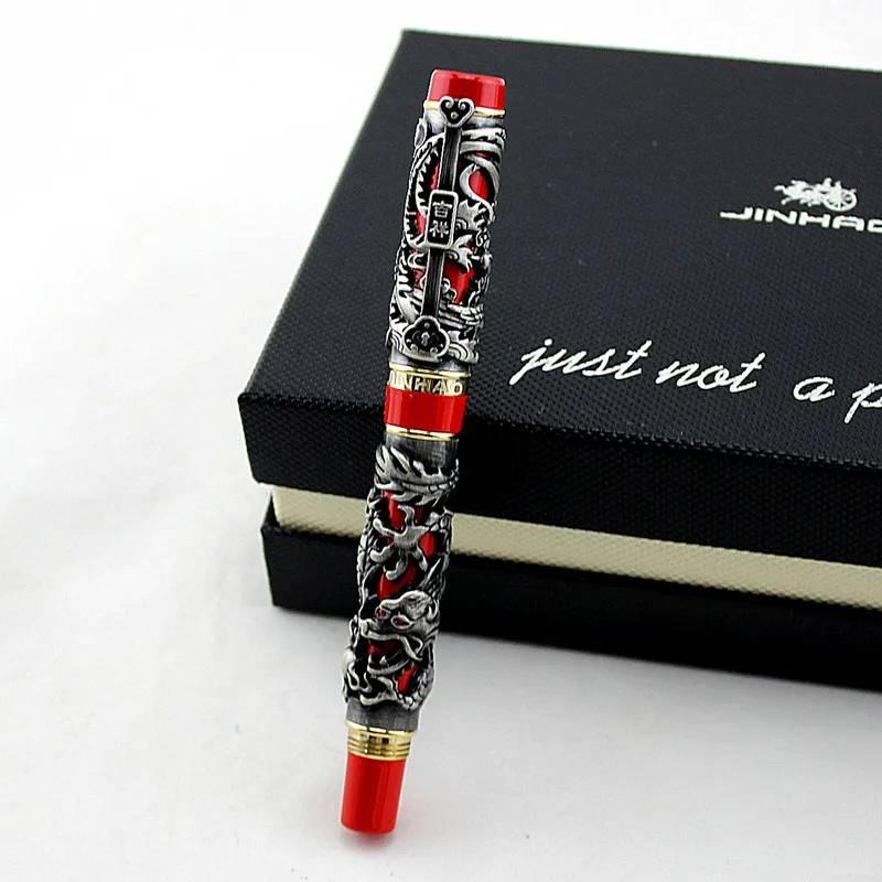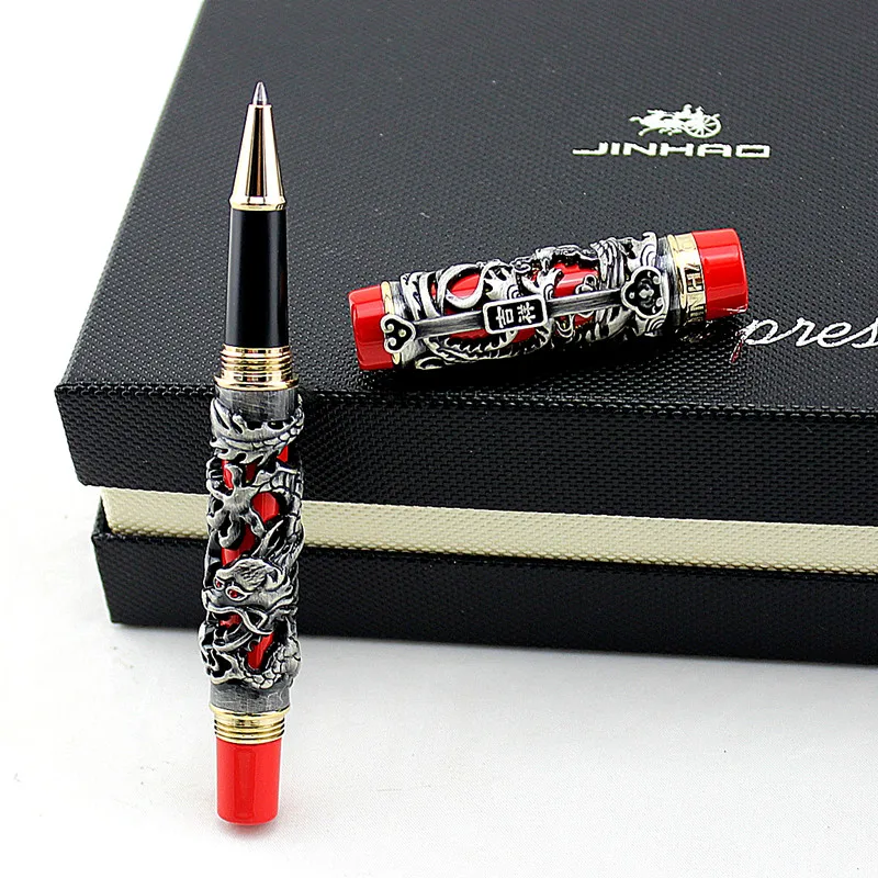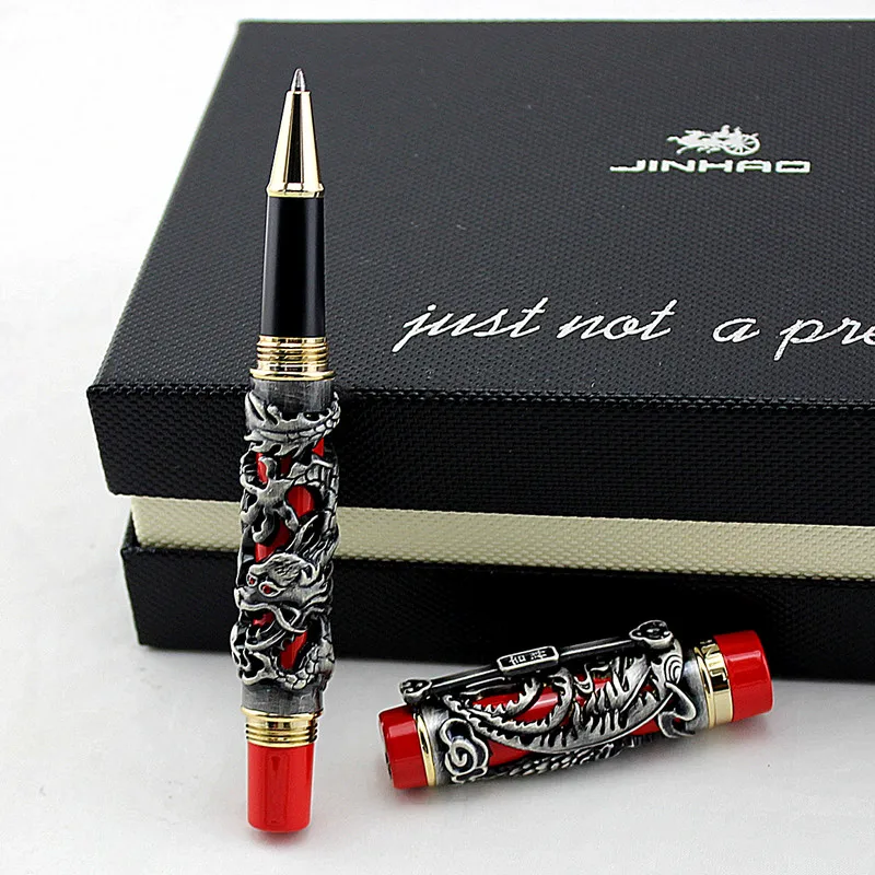 BEST SELLER Jinhao Gold Roller Ball Pens Dragon Phoenix Pattern Heavy Ballpoint Pen with 0.7mm Refill Free Ship