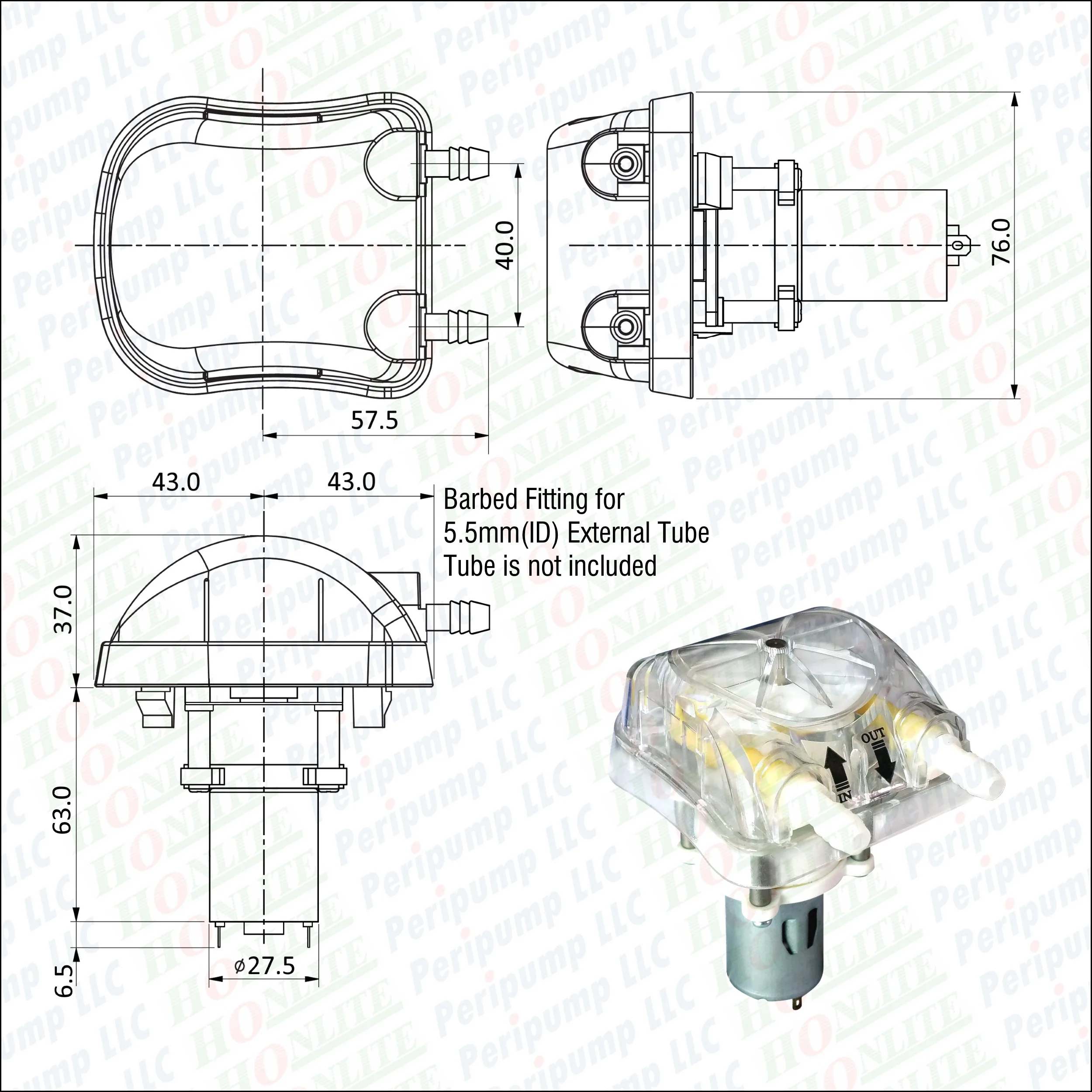 200ml/min 4 rollers 12Vdc peristaltic Pump with Exchangeable Pump Head and PharMed BPT peristaltic